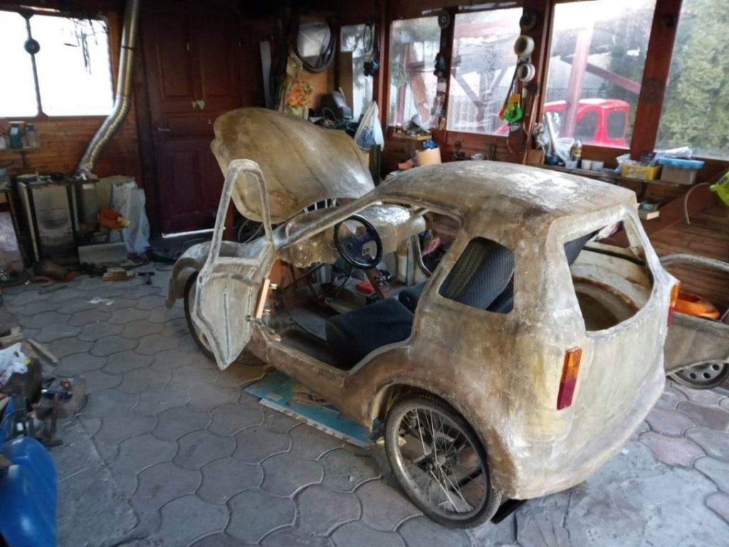 Упродовж останнього року українець працює над чотириколісною моделлю. Щоб створити його, з 90 кг глини було виліплено спеціальну форму, за якою було відлито кузов. Його вартість становила лише 800 гривень.