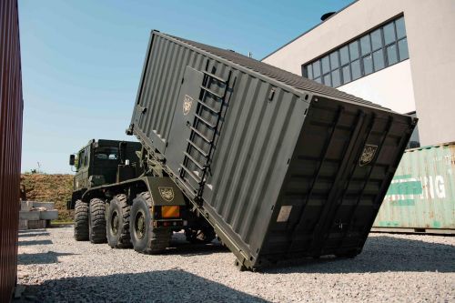 Уніфікований за стандартами НАТО для того, аби перевозити вантажні контейнери. З боєкомплектом (потягне аж 18 тонн), з майстернями, з лазнями, з бетерами, з саушками.