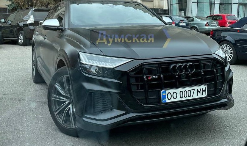 Позашляховик Audi SQ8 з номерами ОО0007ММ помітили на парковці біля адмінбудівлі на проспекті Шевченка, 4, де розташовуються Одеські облрада й обласна військова адміністрація.