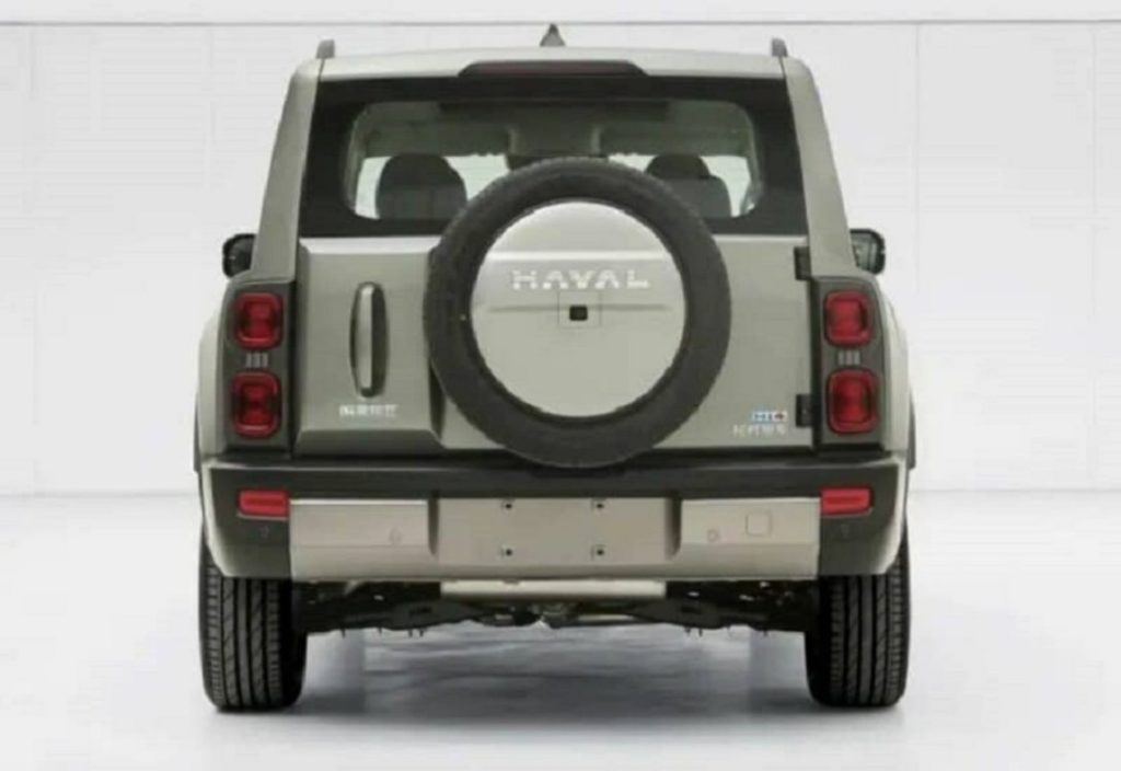 Позаду розташовані подвійні ліхтарі у стилі Land Rover Defender. На задніх дверях встановлено запасне колесо.