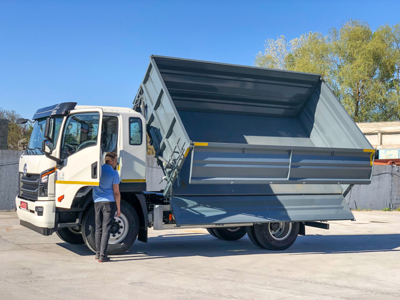 Самоскид з тристороннім розвантаженням та платформою об’ємом 12 куб. м. вже допомагає в роботі працівникам управління житлово-комунального одного з господарств. Конструктивно-допустима вантажопідйомність самоскида — 8 тонн.