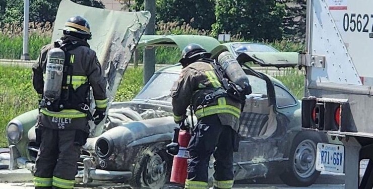 Пожежники оперативно прибули на місце інциденту і швидко загасили суперкар Mercedes 300SL. В авто обгоріли моторний відсік і ліва частина кузова.