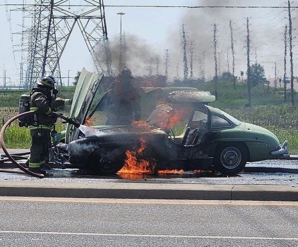 У США згорів раритетний Mercedes-Benz 300SL Gullwing 1955 року. Знаменитий суперкар щойно пройшов реставрацію. Фото пожежі та її наслідків опублікували на сторінці supercar.fails в Instagram, повідомляє «Фокус».