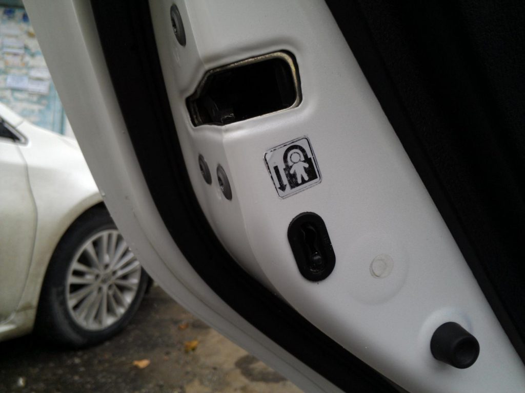 На торці задніх дверей потрібно знайти спеціальний важіль і перевести його в інше положення. У цьому випадку двері можна відчинити тільки зовні.