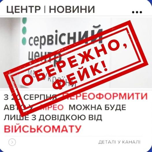 Фейк: обов’язкова довідка із військкомату при перереєстрації авто у сервісних центрах МВС