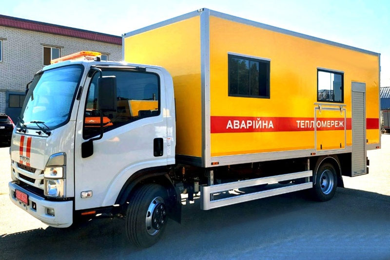 Для відновлення та обслуговування тепломереж комунальникам було передано нову спеціалізовану аварійно-ремонтну майстерню на базі ISUZU NPR75. Машину виготовили на Заводі спецтехніки «Техкомплект».