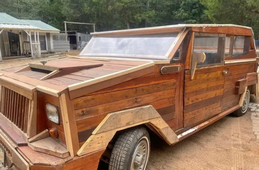 Звичайно, після такої модернізації в ньому складно впізнати оригінальний пікап. Варто зазначити, що робота досить незграбна. Схоже, що матеріалом для кузова стали звичайні дошки. Деякі елементи, наприклад, накладки над колісними арками, навіть не оброблені. На місці бічних дзеркал встановлені дерев’яні муляжі. Оптика у автомобіля є, але хтось став її «донором» сказати складно.