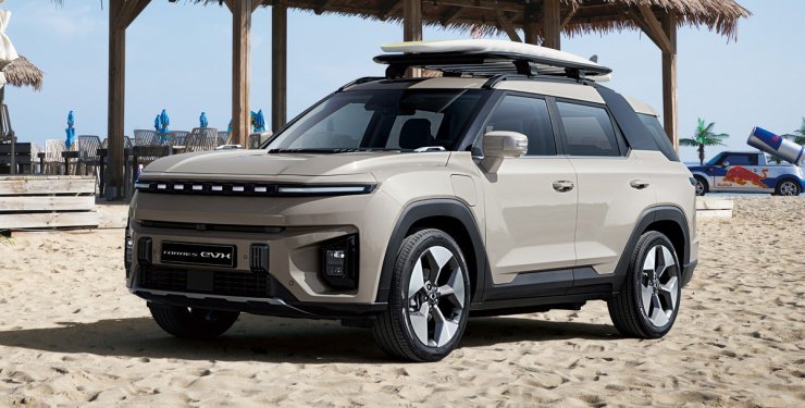 Новий KG Mobility Torres EVX (саме так назвали електрокросовер) оснащений 207-сильним мотором на передній осі та батареєю від BYD ємністю 73,4 кВт∙год. Заявлений запас ходу — 433 км.