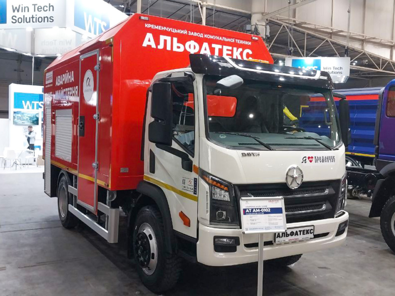 Зокрема український виробник представив аварійну майстерню АТ АМ-0102 на шасі DAYUN CGC1100 та екскаватор-навантажувач XCMG WZ 30-25.