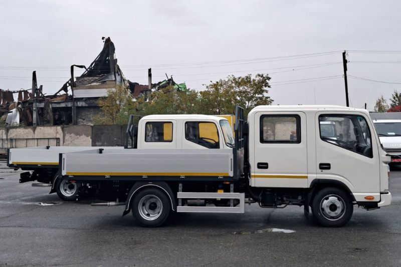 Як зазначається, партія з 2 нових відкритих бортових платформ на базі китайських вантажних шасі JAC N56 DC з екіпажною кабіною їде на відновлення південних регіонів в Україні.
