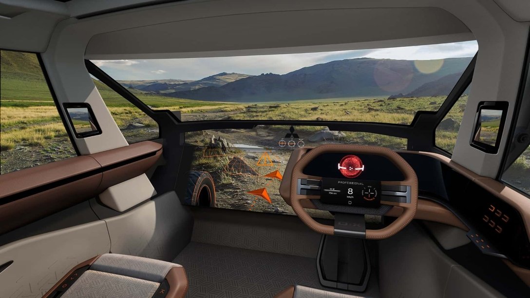 Мінівен Mitsubishi D:X отримав приплюснуте кермо, віртуальний щиток приладів і величезний дисплей на всю передню панель. На нього виводиться зображення з передньої камери, тож можна дивитися на дорогу «крізь» капот. Акустичну систему для авто створили в Yamaha.