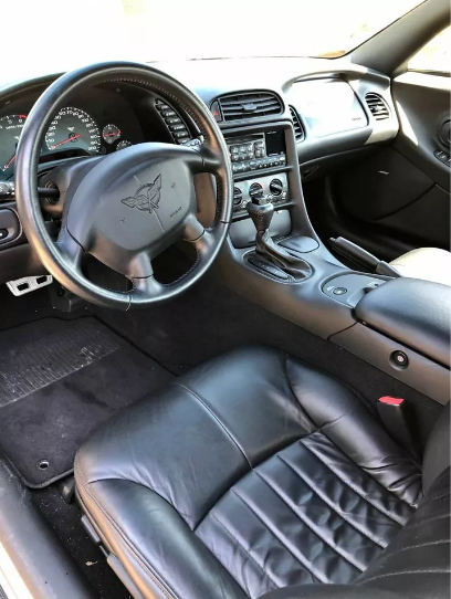 Салон Chevrolet Corvette C5 виглядає ідеально. На чорних шкіряних сидіннях практично немає ознак зношування, і це враховуючи 21-річний вік спорткара. Також ідеальні рульове колесо, передня панель та центральна консоль.