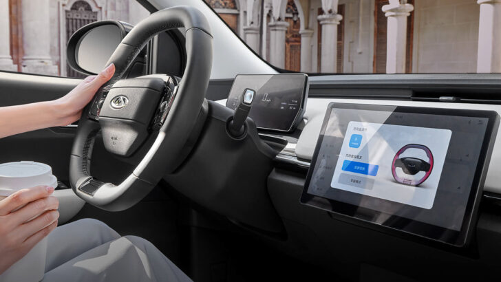 Чотиримісний салон Chery Little Ant New Edition має досить мінімалістичний вигляд. Там встановили двоколірне триспицеве рульове колесо, 10,1-дюймовий центральний екран і велике дзеркало, що світиться. Є бездротова зарядка, Bluetooth-підключення, дистанційне керування та фірмовий китайський месенджер WeChat.
