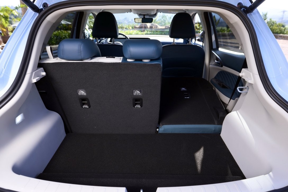 У салоні ORA 03 2023 шкіра та класичні хромовані кнопки поєднуються з сучасними 10,25-дюймовими дисплеями на передній панелі. Об’єм багажника хетчбека становить 228-858 л.