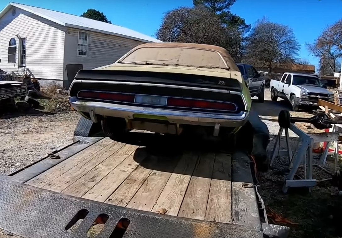 Dodge Challenger T/A не їздив з 1977 року. Його поставили під навіс на подвір’ї ферми, причому мотор, колеса і вихлопна система зберігалися окремо. Поруч помітні останки інших автомобілів.