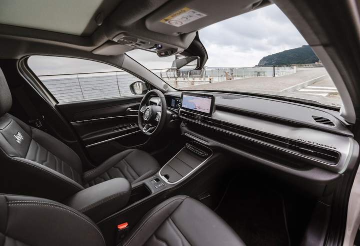Кросовер Jeep Avenger e-Hybrid також має інші зручні функції – наприклад, панорамний скляний дах Open-Air Sky Roof, водійське сидіння з електроприводом та функцією масажу, оздоблення салону шкіряними елементами тощо.