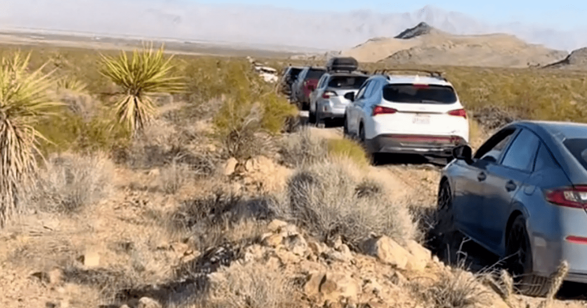 Недавні кадри з TikTok показали, як мандрівники, які нічого не підозрюють, слідуючи «альтернативному маршруту» в додатку Google Maps, застрягли в пустелі Невади. Безневинна на перший погляд подорож обернулася катастрофою, коли автомобілі скупчилися на вузькій позашляховій трасі, змусивши деяких з них об’їжджати через кущі та каміння.