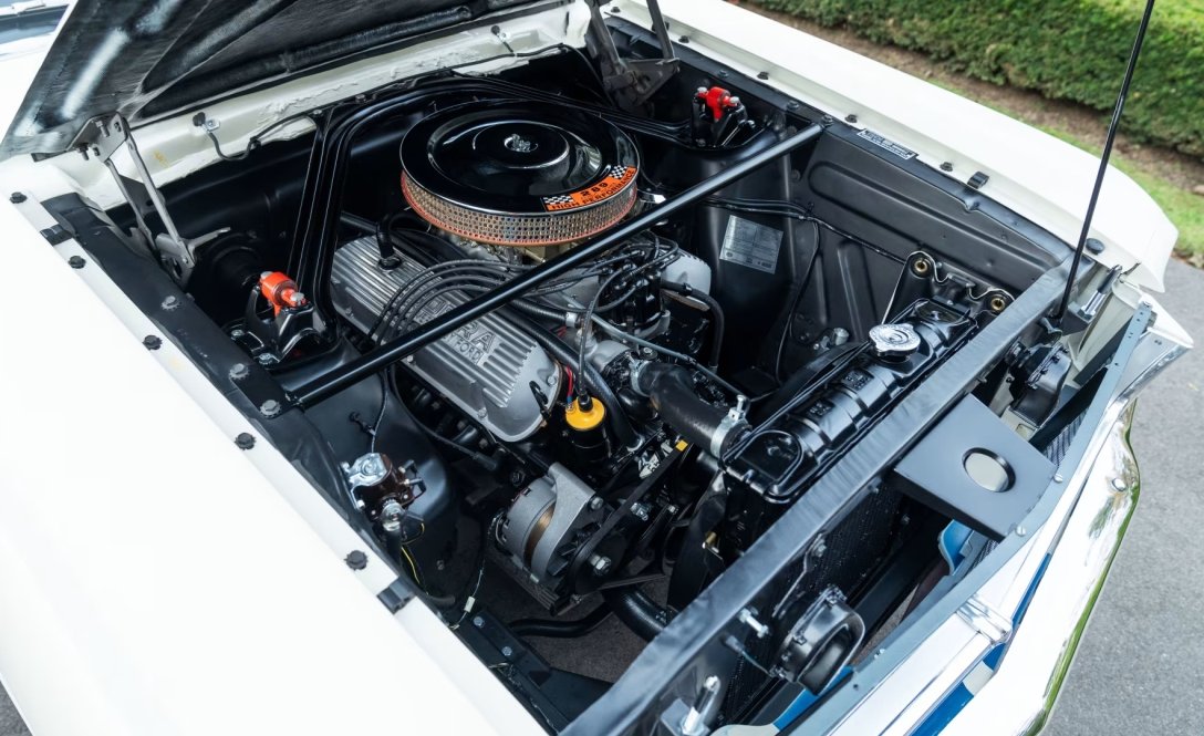 Керролл Шелбі збільшив потужність 4,7-літрового V8 з 271 до 306 к.с., доопрацював підвіску і гальма Ford Mustang, а також полегшив авто до 1268 кг завдяки капоту зі скловолокна і відмові від задніх крісел. Ford Mustang Shelby GT350 1965 року здатний розігнатися до 100 км/год за 6,5 с і розвинути 217 км/год. Авто активно брало участь у перегонах.