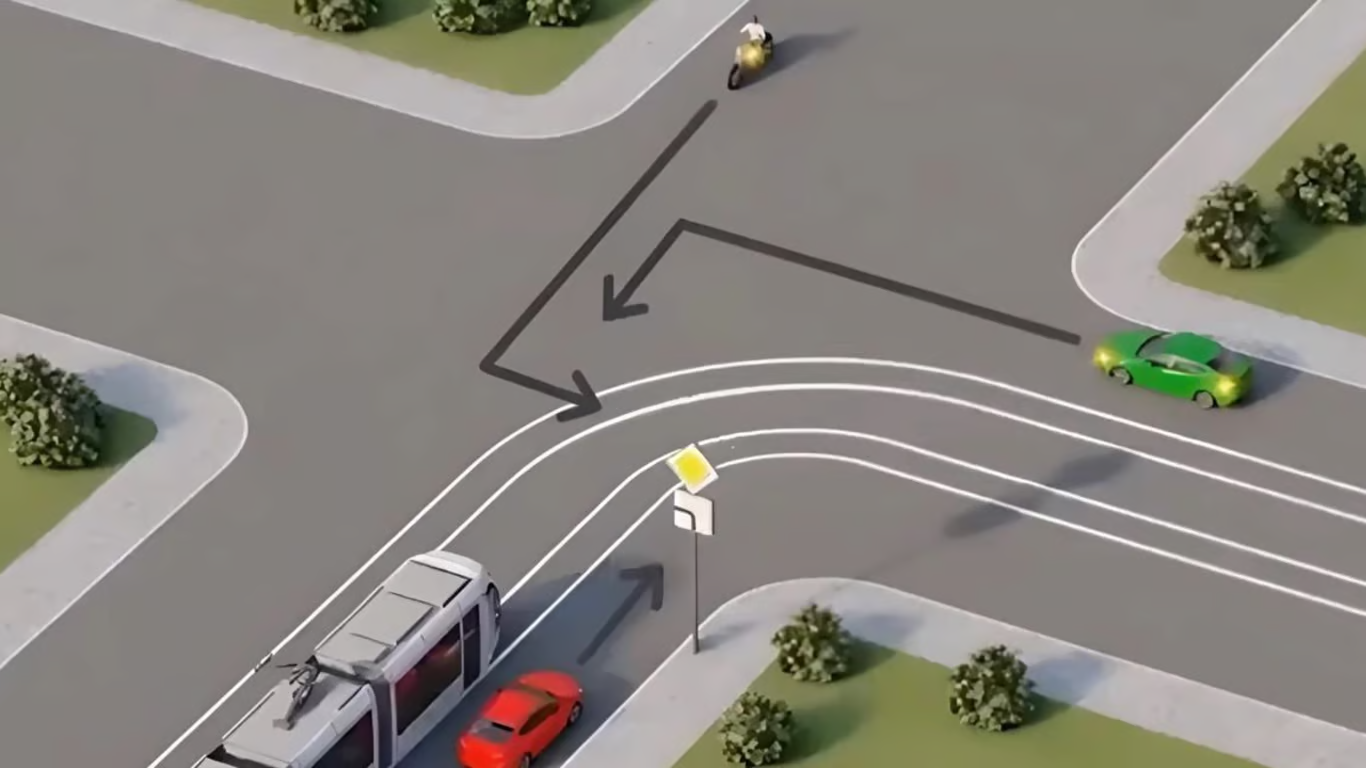 Тобто водій червоного авто поступається дорогою лише водієві трамвая.