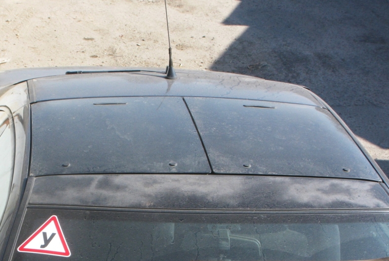 За склом можна розглядіти панель приладів зі вставкою з горіхового шпону. На жаль, рідні емблеми не збереглися – як на решітці радіатора, так і в кутку бокового заднього вікна.