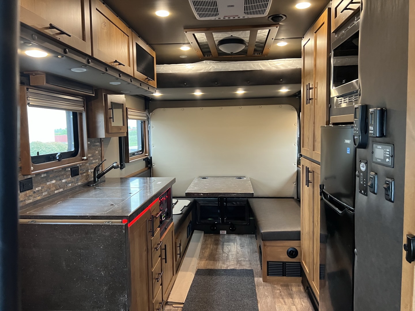 Усередині з’явилися розкладне дворівневе ліжко, плоский телевізор і мінікухня з раковиною, столом, плитою та холодильником. Також з’явилися різноманітні шафи та навіть санвузол. В оздобленні використано дерево та кахлі.