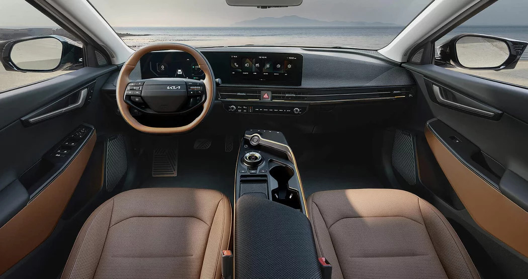 У салоні оновлений EV6 отримав вигнутий панорамний дисплей, на якому розташовані цифрова комбінація приладів та екран інформаційно-розважальної системи. Двоспицеве кермо тепер оснащене сканером відбитків пальців. Це дозволяє зареєстрованим водіям заводити автомобіль без ключа. Бездротові оновлення будуть доступні для багатьох функцій, включаючи основні електронні елементи керування.