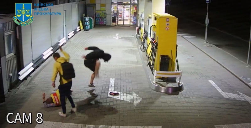 В якийсь момент один із підозрюваних пішов в магазин, де касир пояснила йому, що алкоголь продають до 22:00, інший в цей час на вулиці з палицею в руках почав суперечку з оператором АЗС.