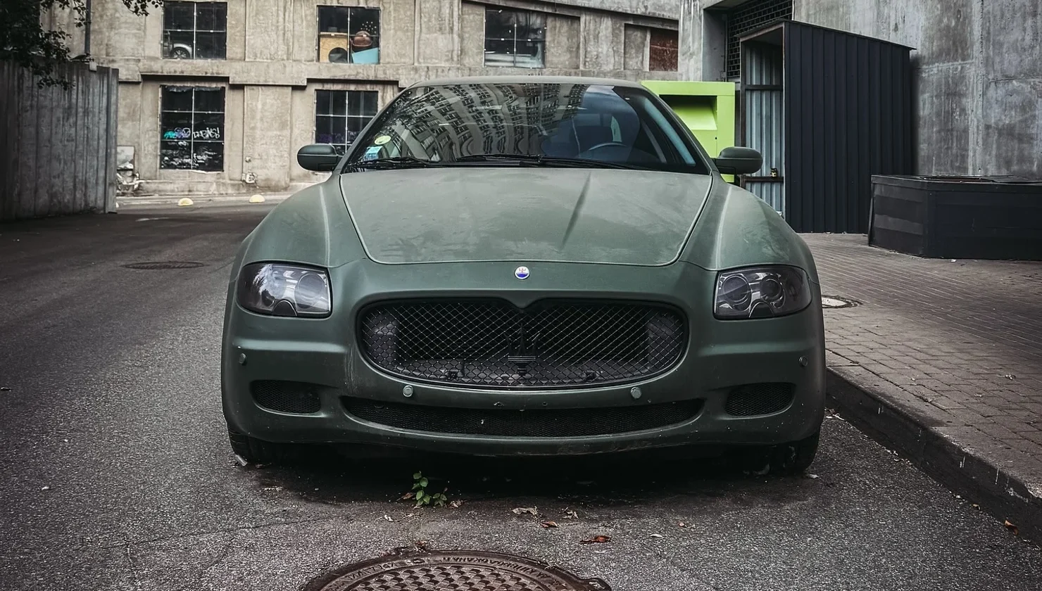 Стильний італійський седан виглядає занедбаним: кузов покритий пилом і брудом, колеса помітно втратили тиск, видно дрібні подряпини і вм’ятини. Номерні знаки на машині відсутні, тож, ймовірно, вона вже дуже давно не виїжджала на дороги.