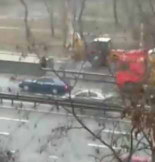 В Киеве в Святошинском районе трактор снес на тротуаре полусферы, которые за свой счет установил местный житель.